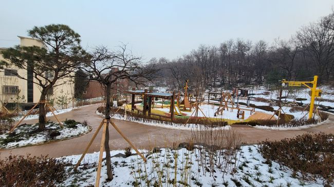 산림에 연접한 지형 특성을 살려 기존 지형에 맞게 공간을 조성하고, 노약자 등 교통약자들이 편하고 안전하게 이용할 수 있도록 계단과 턱이 없는 경사로로 조성했다.