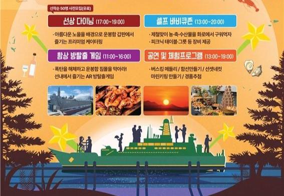 시 관계자는 "함상 석양을 배경으로 로컬푸드 미식과 문화 콘텐츠가 어우러지는 새로운 축제가 될 것"이라며 "시민과 관광객 모두에게 잊지 못할 경험을 제공하겠다"고 말했다.