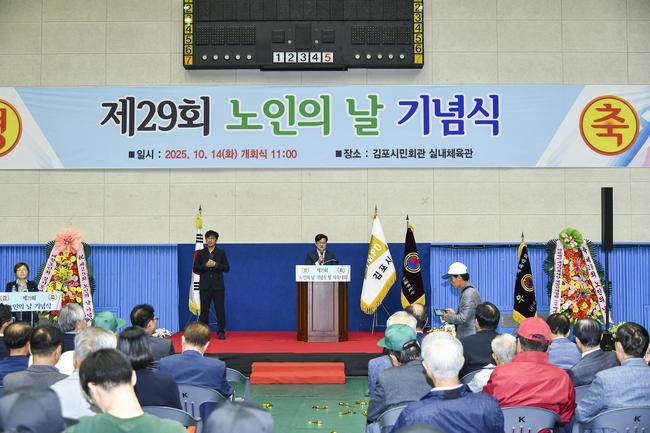김포시(시장 김병수)가 지난 14일 김포시민회관 실내체육관과 김포종합운동장 일원에서 '제29회 노인의 날 기념행사'를 성대히 개최했다.