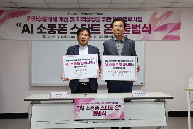 마포구(구청장 박강수)는 10월 16일 오후 4시, 레드로드예술실험센터 2층 세미나실에서 'AI 소통폰 스타트 온(Start ON)' 협력사업 출범식을 열고 외국인 관광객과 상인의 소통 강화를 위한 민관 협력의 첫발을 내디뎠다.