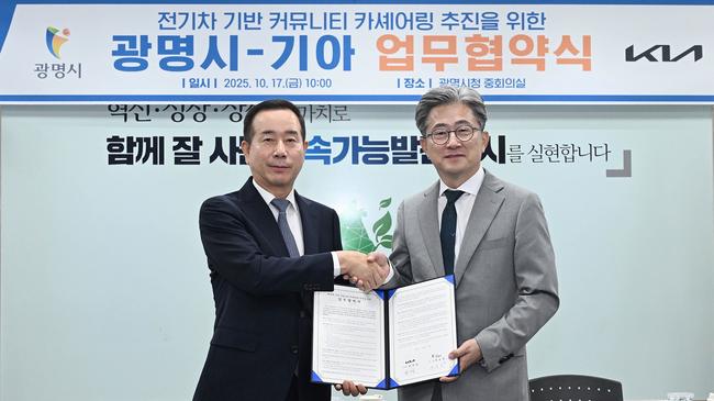 기아는 17일(금) 광명시와 ‘전기차 기반 커뮤니티 카셰어링 추진을 위한 업무협약(MOU)’을 체결했다.