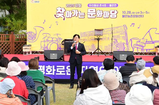박용철 강화군수는 "올해 찾아가는 문화마당이 지역 곳곳에서 큰 호응을 얻으며 성공적으로 마무리돼 기쁘다"며 "앞으로도 주민들이 생활 가까이에서 문화를 즐길 수 있는 기회를 꾸준히 확대해 나가겠다"고 전했다.
