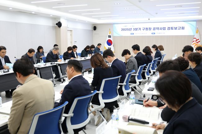 10월 23일 구청 창의홀, ‘2025년 3분기 민선8기 공약사업 검토보고회’ 개최 모습.구로구는 구청 창의홀에서 ‘민선8기 3분기 공약사업 검토보고회’를 열고 95개 공약사업의 추진 현황과 보완 과제를 공유했다고 4일 밝혔다.