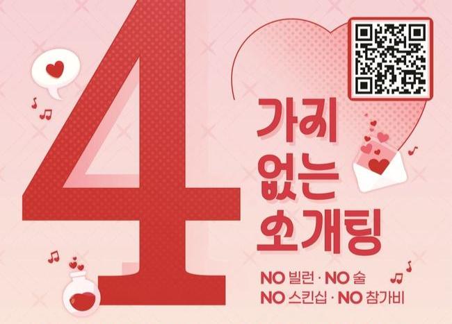 1회차 '4가지 없는 소개팅'은 11월 21일(금)에 로테이션 형식으로 진행된다. 4가지는 ▲NO 빌런 ▲NO 술 ▲NO 스킨십 ▲NO 참가비로, 참가자들은 각자에게 10분씩 주어지는 짧은 시간 동안 여러 사람과 돌아가며 대화를 나누게 된다. 사전에 작성한 소개카드를 통해 직업, 취미, MBTI 등 다양한 정보를 공유할 수 있으며, 대화 종료 후에는 상대방에 대한 인상을 메모로 기록한다. 최종적으로 마음에 드는 이성 두 명을 선택해 커플 매칭이 이루어진다.