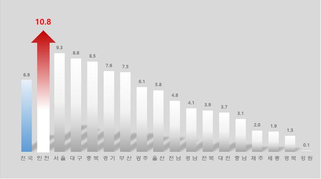 최근 인천시는 청년 인구 순유입이 지속되며 ‘청년이 머무는 도시’로 주목받고 있다. 2025년 8월 시도별 출생아 수 전년 동기 대비 증가율
