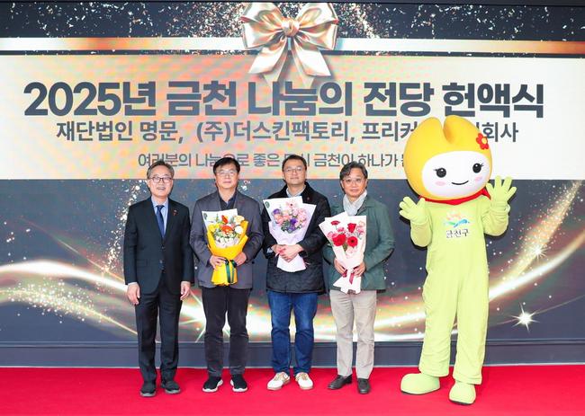 더불어, 사각지대 해소를 위한 신규 사업 '금(천구 김)치가 온다'의 제1호 기부자인 ㈜에스씨인턴내셔널의 기부금 전달식도 함께 진행됐다. 이 사업은 겨울철 저소득 가구에게 가장 기본적이고 필수적인 음식인 김치를 지원해 건강한 먹거리를 보장하고, 기존 연말 김치 배분의 한계를 보완해 취약계층 1가구당 1김치 지원을 목표로 한다.