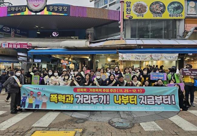 인천시 남동구는 여성 폭력 추방주간(11.25.∼12.1.)을 맞아 모래내시장 일원에서 여성 폭력 근절과 성평등 인식개선을 위한 민관 합동 캠페인을 했다고 1일 전했다.