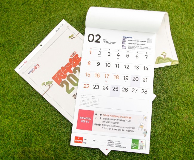 달력은 벽걸이 형태로 제작됐으며, 12월 중 동주민센터를 통해 복지 대상자에게 총 5,000부를 배부할 예정이다.