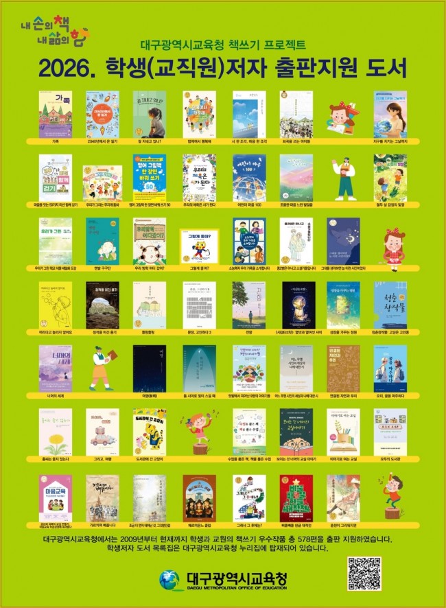 대구시교육청은 2009년 이후 매년 책쓰기 사업을 통해 학생·교원저자를 양성하고 있으며, 올해까지 총 578편의 도서 출판을 지원했다.