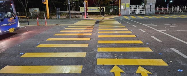 어린이보호구역 내 노란색 횡단보도.