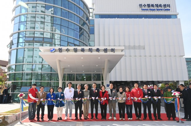 연수구(구청장 이재호)가 원도심 주민들의 생활체육 수요를 뒷받침할 새로운 체육시설인 연수행복체육센터 건립을 완료하고 준공식을 열었다.