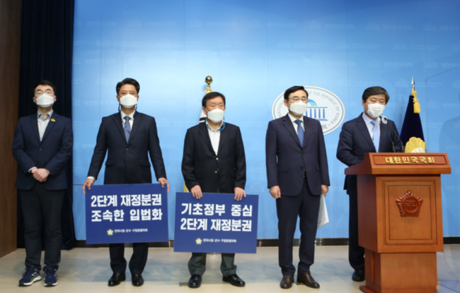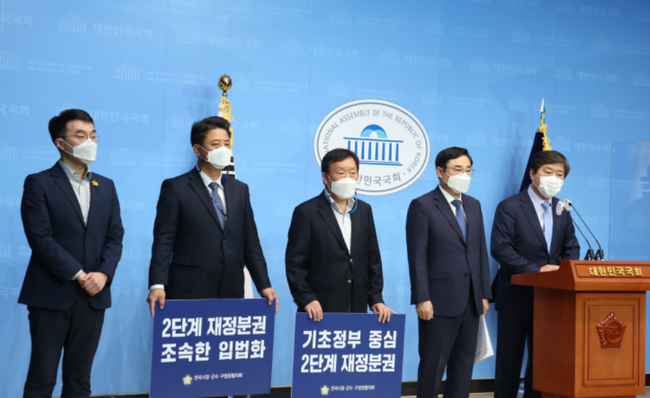 전국시장군수구청장협의회는 1일 국회 소통관에서 전국 시장·군수·구청장을 대표해 황명선 대표회장과 이동진 상임 부회장(서울 도봉구청장) 등이 기자회견을 열고 2022년부터 기초지방정부 중심의 2단계 재정분권이 추진돼야 한다고 밝혔다.