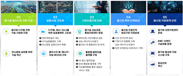 5대 미래전략은 ▲물기술 패러다임 전환 지원, ▲실증시설 고도화, ▲시장진출지원 강화, ▲ 물산업 특화 인력양성, ▲물산업 지원체계 강화다.