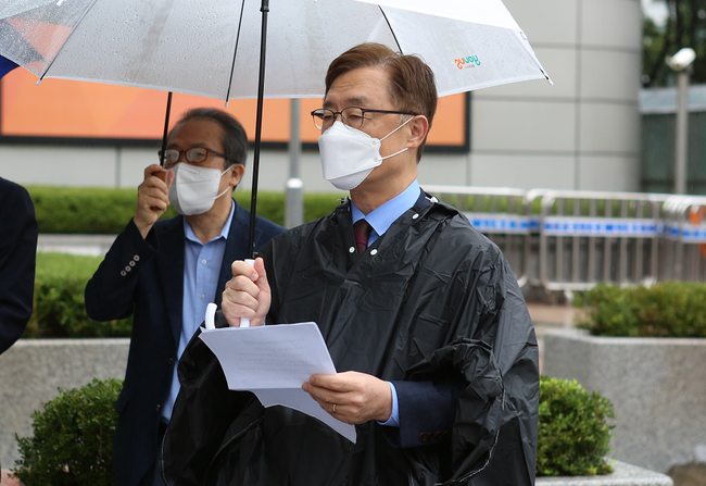 최재형 후보는 이날 서울 광화문 동화면세점 앞에서 `이재명 사퇴 촉구 성토대회`를 열었다.