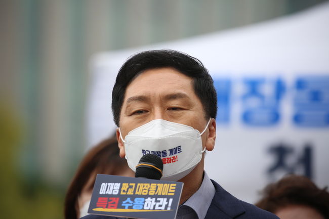 야당은 8일 오전 국회 본관 앞에서 `대장동 게이트 특검 추진 천막투쟁본부 출정식`을 개최했다.김기현 국민의힘 원내대표가 `대장동 개발 사업 비리 의혹` 특검을 요구하고 있다.