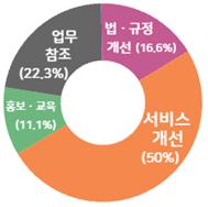 국민권익위가 매주 불편사항을 발굴해 통보하면 관계기관은 법·규정 및 서비스 개선, 홍보·조사 등 다양한 방법으로 이를 개선하고 있으며 이번에 제도개선으로 활용된 비율은 64.2%이다.