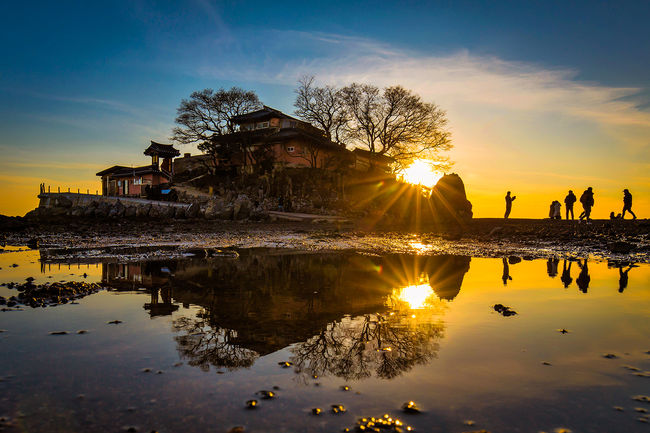 간월암은 고요한 바다 위의 낙조가 유명한 곳으로 아름답고 몽환적인 분위기를 조성하며, 바닷길이 열리면 섬, 닫히면 뭍이 되는 신비로운 곳이다.