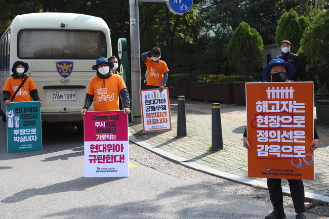 노조는 이날 ▲현대자동차그룹 엄중 처벌 ▲17년간 이어져온 현대자동차그룹의 불법파견에 대한 국민적 사죄 ▲불법파견 범죄 은폐 중단 및 법원판결-고용노동부 시정명령 이행 ▲불법파견 문제해결 위한 교섭 참여를 요구했다.