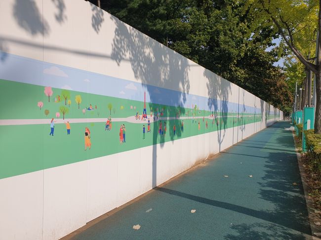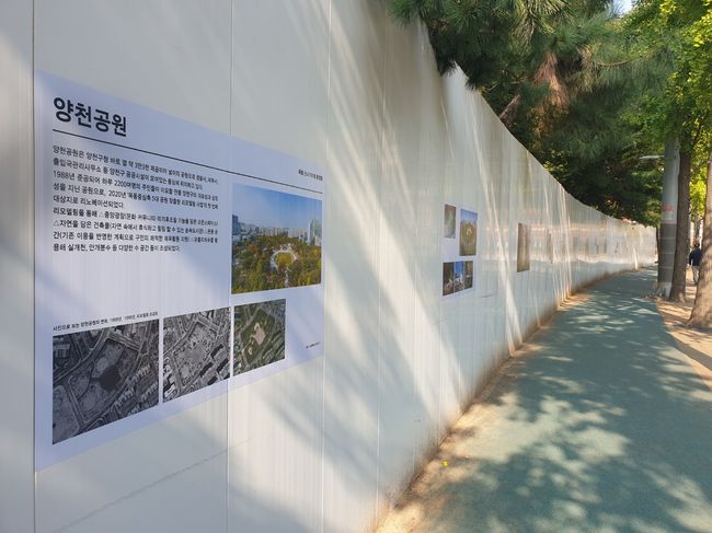 양천구는 12월 말 개장을 목표로 목동 파리공원에 대한 리노베이션 공사를 진행하면서, 공사가림막을 활용해 공사 현장 주변을 ‘이야기가 있는 전시 공간’으로 새롭게 연출했다. 이번 전시는 가림막 주변으로 우회하는 불편을 감내하며 완공을 기다리는 주민들에게 공사 기간 중 지역의 역사가 담긴 전시작을 선보인다는 점에서 의미가 있다.