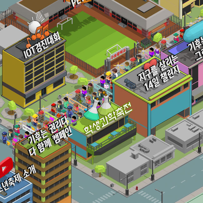 웹페이지상에는 기존에 청소년축제가 열리던 구로중앙로 일대가 그래픽으로 구현된다.