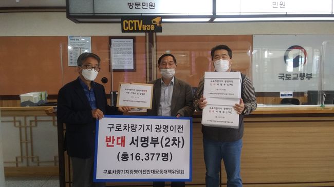 이번 서명부는 2019년 이전사업 전략환경영향평가(초안)에 대한 2만 1,175명 반대의견서 제출 이후 일방적인 희생을 강요하는 이전사업을 기필코 막아내겠다는 광명시민들의 확고한 의견을 국토교통부에 다시한번 확실하게 전달하기 위해 추진됐다.