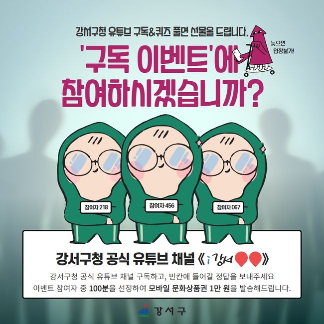 참여방법은 유튜브 ‘i강서TV’ 채널 구독 후 구독 인증 사진과 함께 낱말 퀴즈 정답을 채널에 공지된 참여 링크를 통해 제출하면 된다.