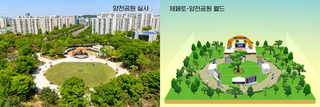 축제가 진행될 실제 양천공원과 메타버스 속 양천공원의 모습