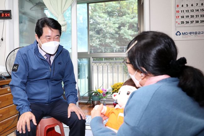 지난 10월 박준희 구청장이 홀몸장애인가구를 방문해 안부를 확인하고 반려로봇 기능을 설명했다.