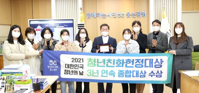 광명시가 청년친화헌정대상 3년 연속 기초자치부문 `종합대상`을 수상했다박승원 시장은 "광명시 청년공감정책은 청년들이 주체가 되어 끊임없이 토론하며 만든 정책이다. 광명시의 모든 청년들에게 감사드리며, 최근 청년들의 복합문화공간인 청년동이 문을 열었다. 많은 청년들이 이 공간에서 만나 소통하고 토론하며 꿈을 이뤄 가길 바란다“고 말했다.