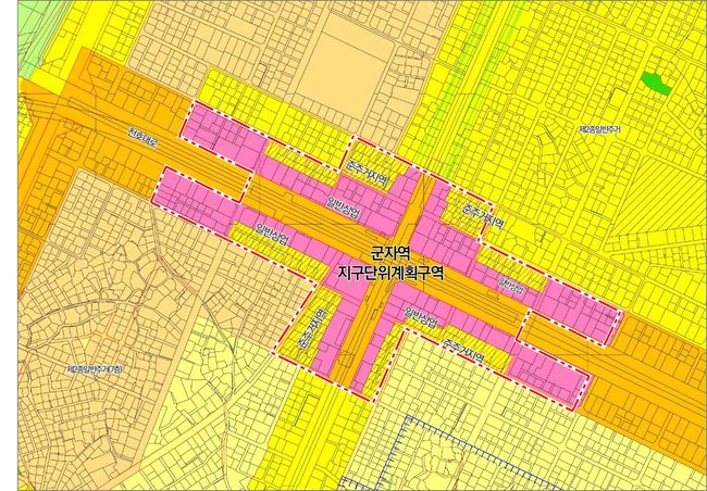광진구가 상업지역 확대를 통해 군자역 일대를 지역발전 견인의 중심지로 육성하고자 도시관리계획 변경을 추진한다.