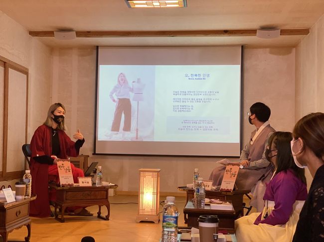 올해 10월 15일 ㈜리슬 황이슬 대표가 `나는 한복입고 세계간다`라는 주제로 한옥살롱 프로그램을 진행하는 모습