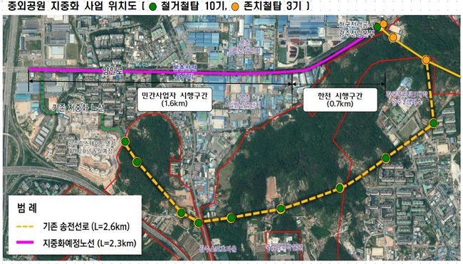 중외공원 내 송전선로 지중화 사업은 중외공원 인근 주민들이 꾸준히 제기해온 숙원 사업으로, 중외공원 일대를 지나는 송전선로 철탑 13기 중 주민주거 생활에 밀접한 10기를 철거해 양일로 2.3㎞ 구간 지하로 이설하는 사업이다.
