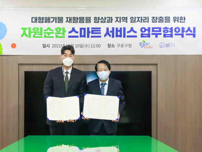 이를 위해 폐기물 자원관리 플랫폼 ‘빼기’를 운영하는 ㈜같다와 10일 협약을 체결했다. 협약식에는 이성 구청장, ㈜같다 고재성 대표이사 등이 참석한 가운데 협약서 서명 및 교환이 이뤄졌다.