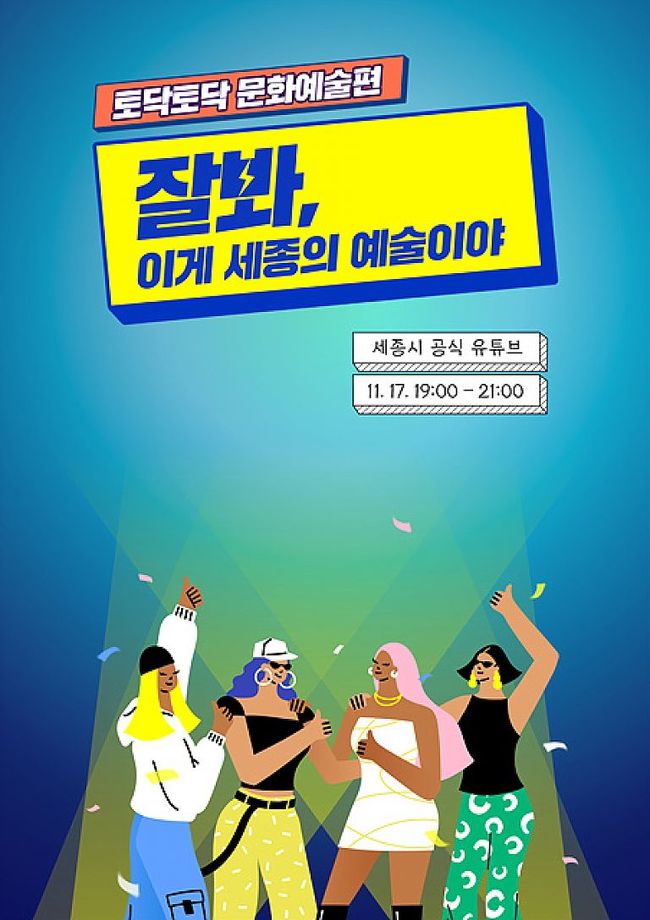이번 11월 행사에서는 ‘잘 봐, 이게 세종의 예술이야’를 주제로 코로나19 장기화로 움츠려들었던 문화예술계의 사연을 들어보고, 위드 코로나 시대를 맞아 다가올 희망을 이야기하는 시간으로 채워진다.