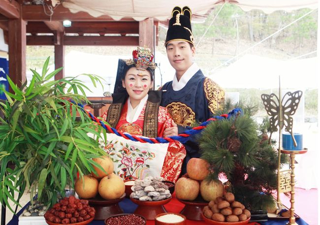 관악구 전통야외소극장에서 진행하는 전통혼례식 신랑신부