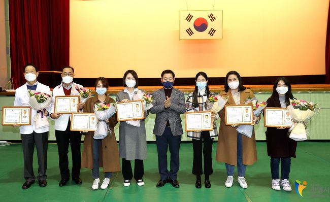 박승원 광명시장은 지난 22일 예방접종센터를 방문해 백신접종에 수고한 의료진과 직원 등에게 표창장을 수여하고 격려했다.