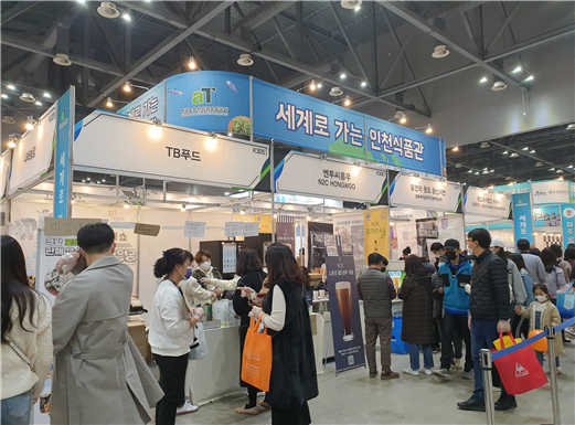 인천시와 한국농수산식품유통공사 인천지역본부는 8개 부스 규모의 인천식품관을 운영하며 쫄면·질소커피·생선구이·막창·부각·조미김 및 면역력에 좋은 쑥·도라지·홍삼 등 9개사를 선정하해 수출 인기 유망상품을 전시했으며, 특히 건강을 중시하는 소비자의 식품 소비 트렌드에 맞춘 저당, 저염 식품 등이 관람객의 눈길을 끌었다.
