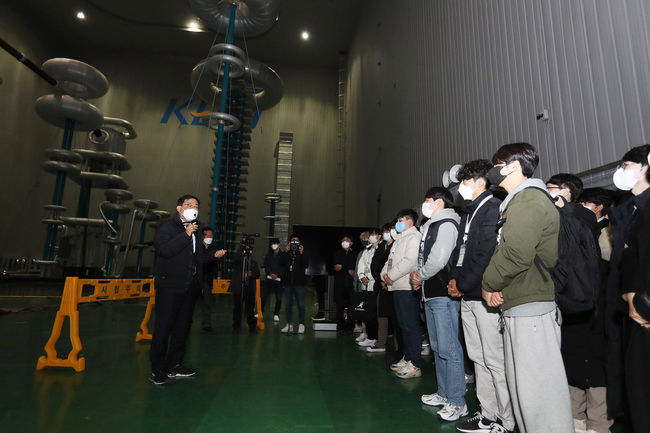시는 ‘인공지능(AI)과 직류, 그리고 번개 이야기’라는 주제로 창원의 미래 산업을 이끌어 갈 관련 학과 학생들에게 창원시의 주요 정책인 AI 사업을 소개하고 한국전기연구원 초고압/대전력시험동 랩투어도 진행하는 시간을 마련했다. 행사는 ▲KERI 대전력·고전압 시험설비 투어 ▲‘영화 속 AI의 이해’ 특별강연 ▲창원시 AI 사업 추진 소개 등으로 구성됐다.