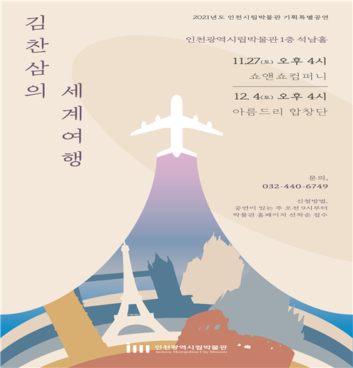 인천광역시는 12월 4일 인천시립박물관에서 한국 최초 세계일주 여행가 김찬삼을 주제로 한 기획특별공연 ‘김찬삼의 세계여행 – 아름드리와 함께 떠나는 FUN FUN한 세계민요 동요여행’을 선보인다고 밝혔다.