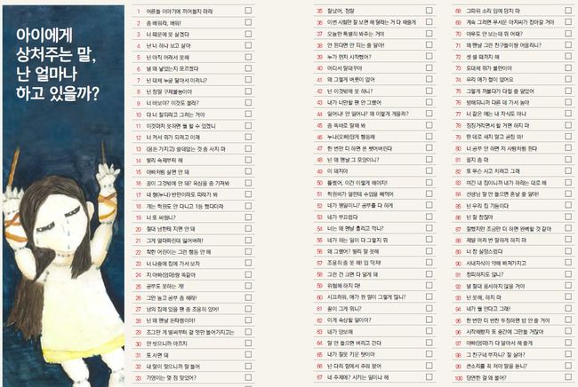 `그리다. 100가지 말상처`에 수록된 `아이에게 상처주는말 난 얼마나 하고있을까` 발췌본