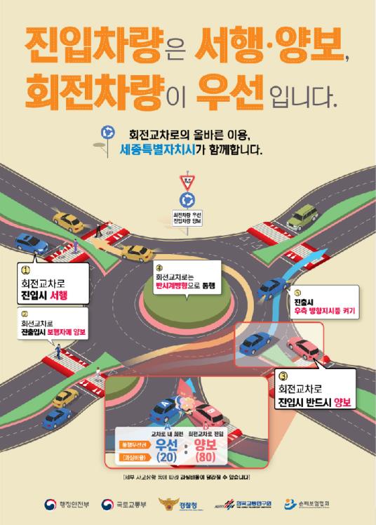 세종특별자치시가 이달 한달 간 교통사고 예방을 위해 시민들을 대상으로 회전교차로 통행방법에 대한 홍보에 나선다.