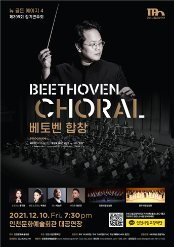 인천광역시는 연말에 가장 많은 이들이 듣고 싶어 하는 음악으로 손꼽히는 베토벤 9번 교향곡 “합창”이 인천시립교향악단 `뉴 골든 에이지`의 4번째 무대로 관객들과 만난다고 밝혔다.