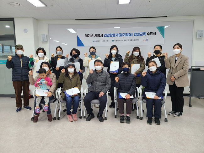 시흥시가 지난 11월 30일 지역사회 걷기 실천 향상을 위해 건강활동가 (걷기리더) 양성과정을 이수한 지역주민을 대상으로 수료식을 개최했다.