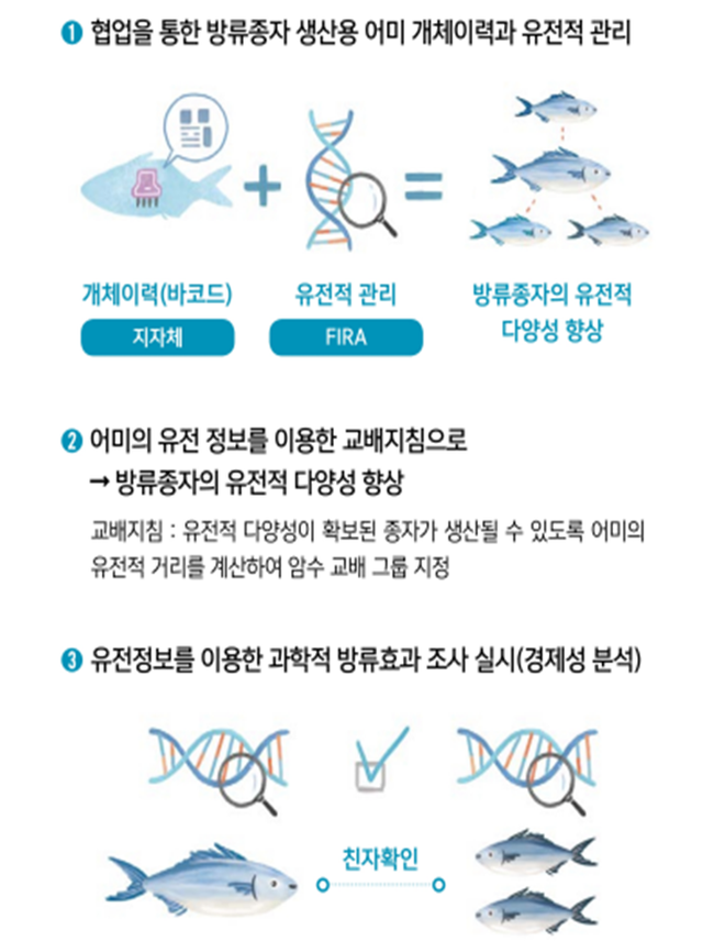 또한, 유전자 정보를 이용해 감성돔의 유전적 다양성을 평가하고, 친자확인 기술을 이용해 과학적이고 체계적인 방류효과 조사도 수행할 예정이다. 공단은 올해부터 감성돔을 유전적 다양성 모니터링 대상 품종에 포함해 유전적 다양성을 평가하고 있다.