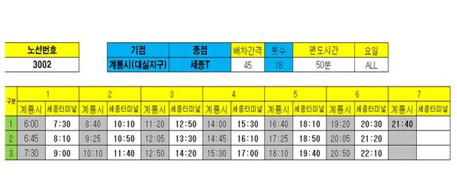세종~계룡 광역노선 시간표