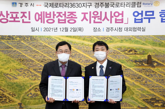 경주시가 경주불국로타리클럽과 함께 저소득 어르신들을 위한 ‘대상포진 예방접종 지원사업’ 업무 협약을 지난 2일 체결했다.
