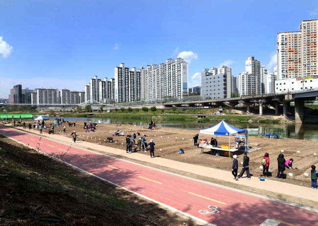 금천구는 농지가 상대적으로 부족하지만 안양천변을 확보하고 있는 지리적 특성을 활용해 지난 4월 안양천 독산동 719-5 좌안에 약 3,000㎡ 규모의 도시농업 체험장을 신규 조성했다. 텃밭 1구획당 10㎡ 규모로 총 250구획을 주민 250명에게 분양하고, 일부 구간은 어린이 생태 교실을 위한 공간으로 운영하고 있다. 이는 수목·초화 식재 등 경관 조성 위주였던 안양천변에 주민들이 직접 경작할 수 있는 분양형 텃밭을 조성해 생활 속 도시농업 만족도를 높였다는 평가를 받고 있다.