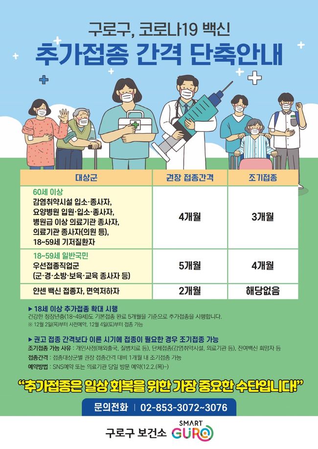 구로구는 코로나19 백신 3차 접종 독려에 나섰다. 지난 4일 18~49세를 대상으로 3차 접종이 시작됨에 따라 구 홈페이지, 소식지 등을 통해 추가접종을 안내하고 있다.
