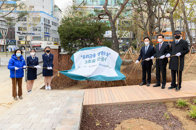 이날 준공식에는 학교숲 조성을 위해 애써왔던 김수영 양천구청장을 비롯해 최동수 우리금융 부사장, 신준환 생명의숲 대표, 송연식 진명여자고등학교 교장 등이 참석했다.