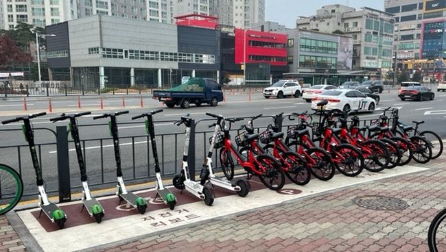 김포시는 자전거 및 킥보드 등 개인형이동장치의 올바른 주차문화를 조성하기 위해 주요 반납지역에 주차존을 설치했다.